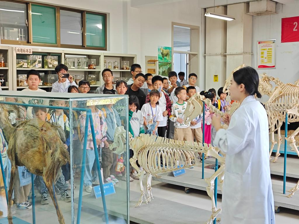 小记者们在讲解员老师的带领下参观了动物标本室、岩石标本室以及昆虫与植物病理标本室。在动物标本室,学生们近距离观察了家畜的骨骼标本,动物器官和病理的浸制标本以及栩栩如生的剥制标本,了解了常见动物生存的生态环境和生活习性;在岩石标本室,学生们亲手触摸了各种古生物化石标本,陨石标本以及矿物岩石标本,感受了大自然的鬼斧神工;而在昆虫与植物病理标本室,学生们则深入了解了节肢动物门昆虫纲下的鳞翅目和鞘翅目昆虫的生活习性以及如何进行野外采集和制作昆虫标本的常见方法。随行的德州晚报负责人表示,本次科普参观活动的开展,不仅为学生们提供了一个自主学习的平台,还充分发挥了实验室资源的作用。在这里,学生们可以亲自动手操作实验,观察和分析实验结果,从而培养他们的实践能力和创新精神。这种实践性的学习方式,有助于激发学生们对科学的浓厚兴趣,让他们亲身体验了科研的魅力和乐趣,为将来从事科学研究打下坚实的基础。