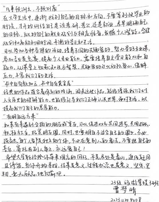 活动期间,各位学长学姐结合自己的在校经历,将自己想对新生说的话写下来分享给大家,为各位新生提供了全方位、多角度的生活学习经验、建议,希望他们可以拥有一个快乐充实的大学生活。
