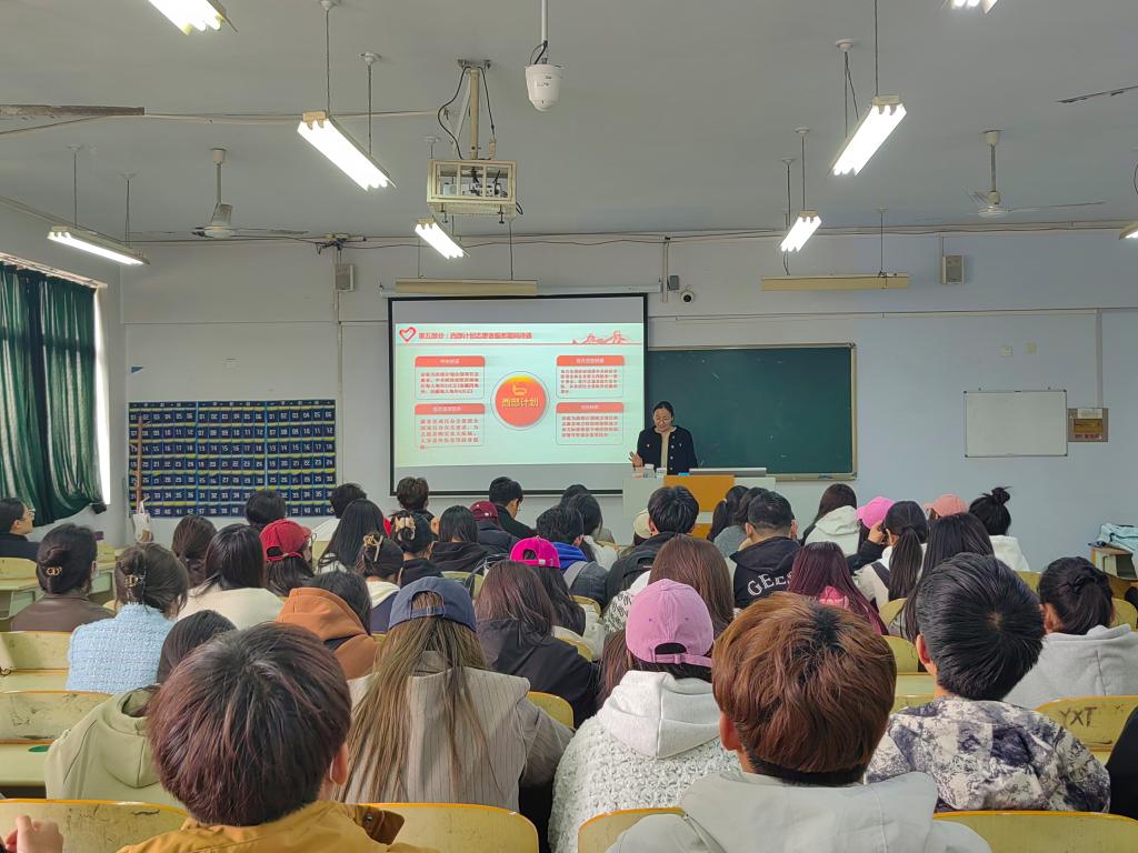 会上,学院团委书记详细介绍了近几年来有关西部计划的政策方针,对西部计划中的热点问题进行了积极解答,加深了同学们对西部计划的认识。进而,就大学生志愿者西部计划政策、网上报名流程、志愿者选拔标准等宣传和要点进行解读,并介绍了相关政策的支持和利益保障,让同学们对于西部计划有了更明确的认识。