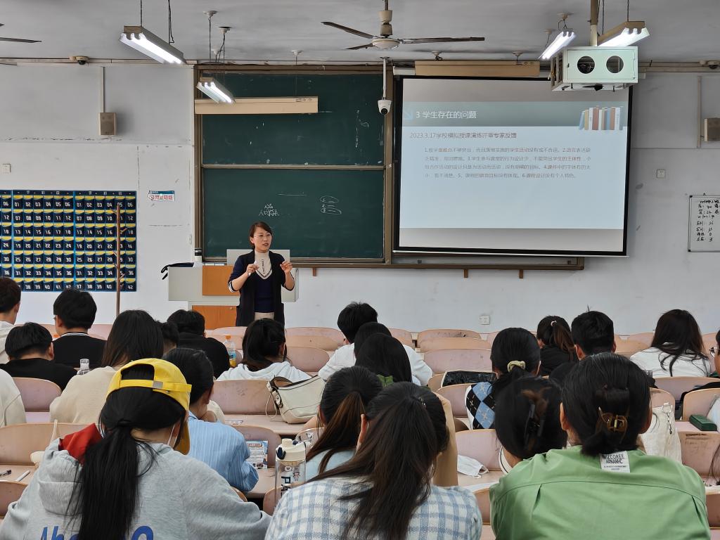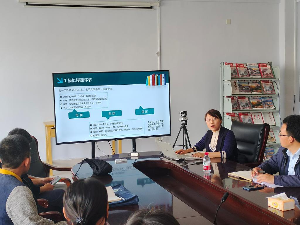 首先,刘芬老师从模拟授课环节、模拟授课评分标准、学生授课中存在的问题、模拟授课培训的重点等四个方面详细讲解了模拟授课的流程、梳理了训练过程中的存在问题、提出今后训练中应改进的措施等。会上,各指导教师针对模拟授课训练进行了交流探讨,进一步明确了模拟授课训练的措施。