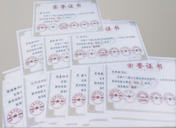 在2020年山东省“第十二届山东省大学生科技节”系列活动山东省大学生地理教学大赛上,我院侯宁同学获大赛一等奖,聂秋月、方浩玲、王怡同学获二等奖,谢雅静、杨唯袆、陈美阳、宋鑫、李绍燕、牛斯琦同学获三等奖。
