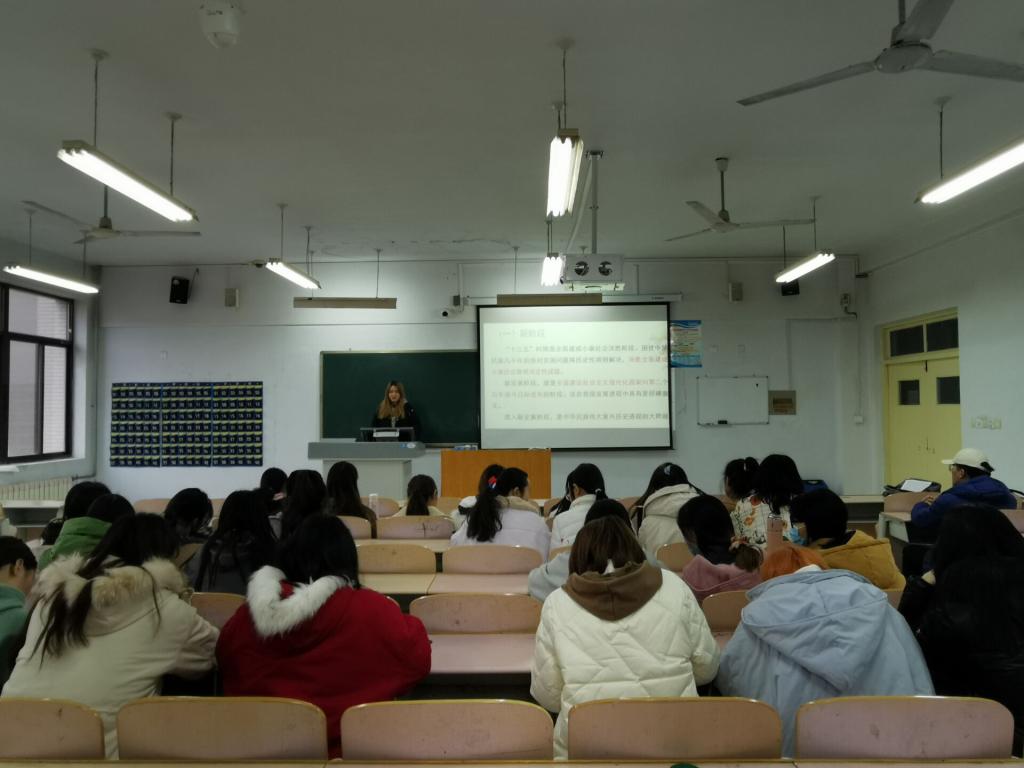 党的十九届五中全会是在我国决胜全面建成小康社会取得决定性成就,即将实现第一个百年奋斗目标、开启全面建设社会主义现代化国家新征程的关键时刻召开的重要会议,也是在我国发展内外环境发生重大复杂变化的历史关口召开的重要会议。为了广泛学习宣传党和国家事业取得的非凡成就,揭示习近平新时代中国特色社会主义思想的实践伟力,揭示党的领导、领袖领航、制度优势、人民力量的关键作用,从而更加自觉地增强“四个意识”、坚定“四个自信”、做到“两个维护”,更加广泛有效地为党凝聚青年,当好党的助手和后备军。2020年11月26日,2019级风景园林二班在体育楼召开了“党的十九届五中全会精神”主题团课活动。