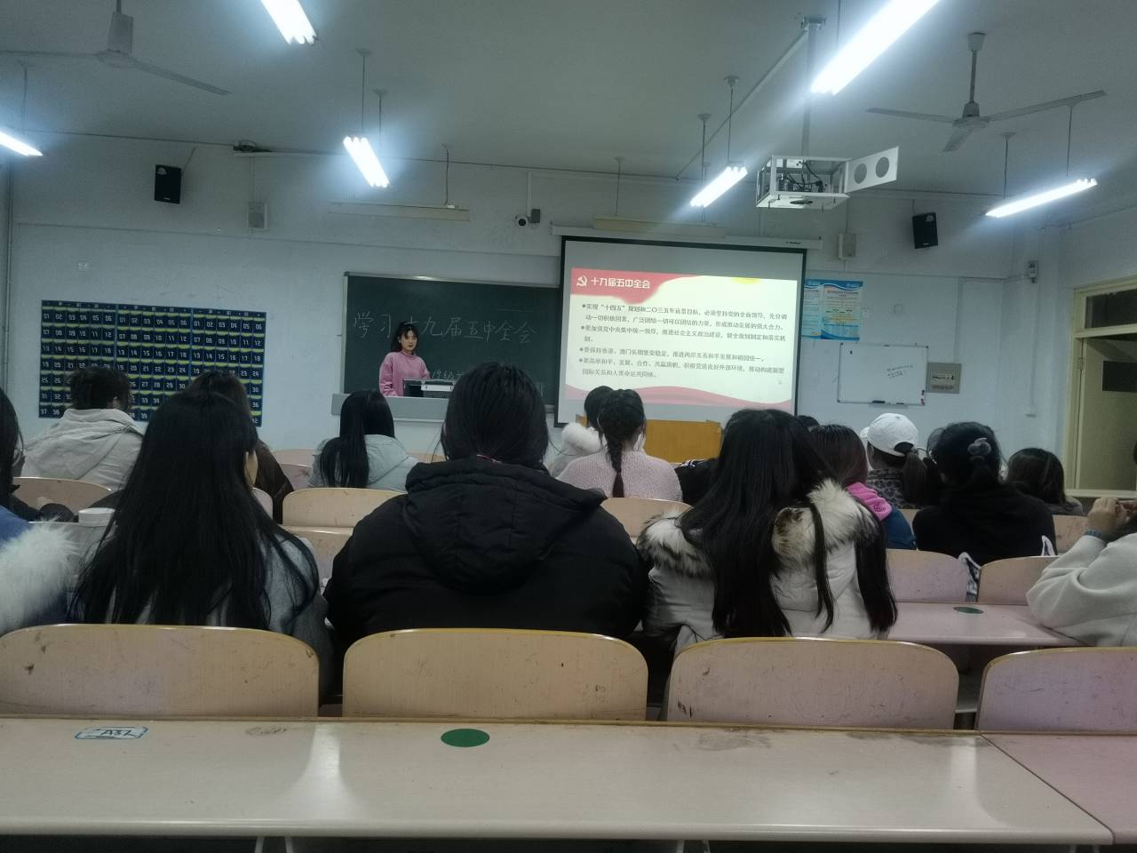 11月26日上午,2019级旅游管理2班团支部全体团员在支部书记的组织下,开展了“学习党的十九届五中全会精神”团课。心怀爱国之情的同学们在团课开始之前就已经观看了习近平总书记在会议上的讲话。本次团课让同学们明白了,正因为我们中国共产党的出色领导,才让我国最早的摆脱了疫情对经济社会生活的高度干扰,现在又把憧憬的发展规划展现给中国人民。