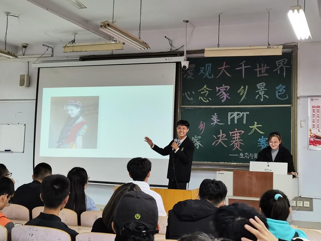 本次活动由我院学生会社团部和青志部主办,我院学生会成员及2020级全体学生参加本次活动。活动围绕“漫观大千世界,心念家乡景色”主题开展,参赛选手以PPT的形式向同学们展示自己的家乡风貌。活动开始后,参赛选手们声情并茂地介绍自己家乡的特色,有人文风情丰富的新疆、山美水美的广西、民族众多的贵州、文化底蕴深厚的甘肃、冰天雪地的吉林,还有我们的孔孟之乡山东。活动过程中,同学还准备了才艺表演和“你画我猜”小游戏,活动氛围轻松有趣。各参赛选手展示完毕后,评委进行评分,我院风景园林班来自新疆的马胜、张耀卉同学荣获一等奖。