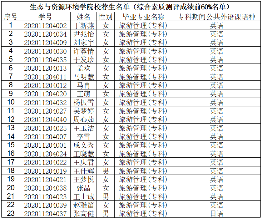 根据山东省教育厅《关于做好2023年普通高等教育专科升本科考试招生工作的通知》(鲁教学函〔2022〕29号)文件要求,现将我院2023年专升本考试校荐生名单(综合素质测评成绩专业内排名不低于同年级同专业的前60%的应届专科毕业生)进行公示。