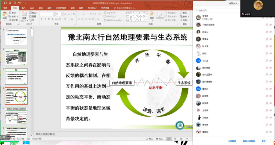 授课期间,唐艳老师进行了实习动员并讲解自然地理学综合实习基本概要和方法;刘芬老师、祁兴芬老师和安文明老师分别从宇宙与自然地理环境、地质地貌与自然地理环境、自然地理要素与生态系统等方面展开教学工作。