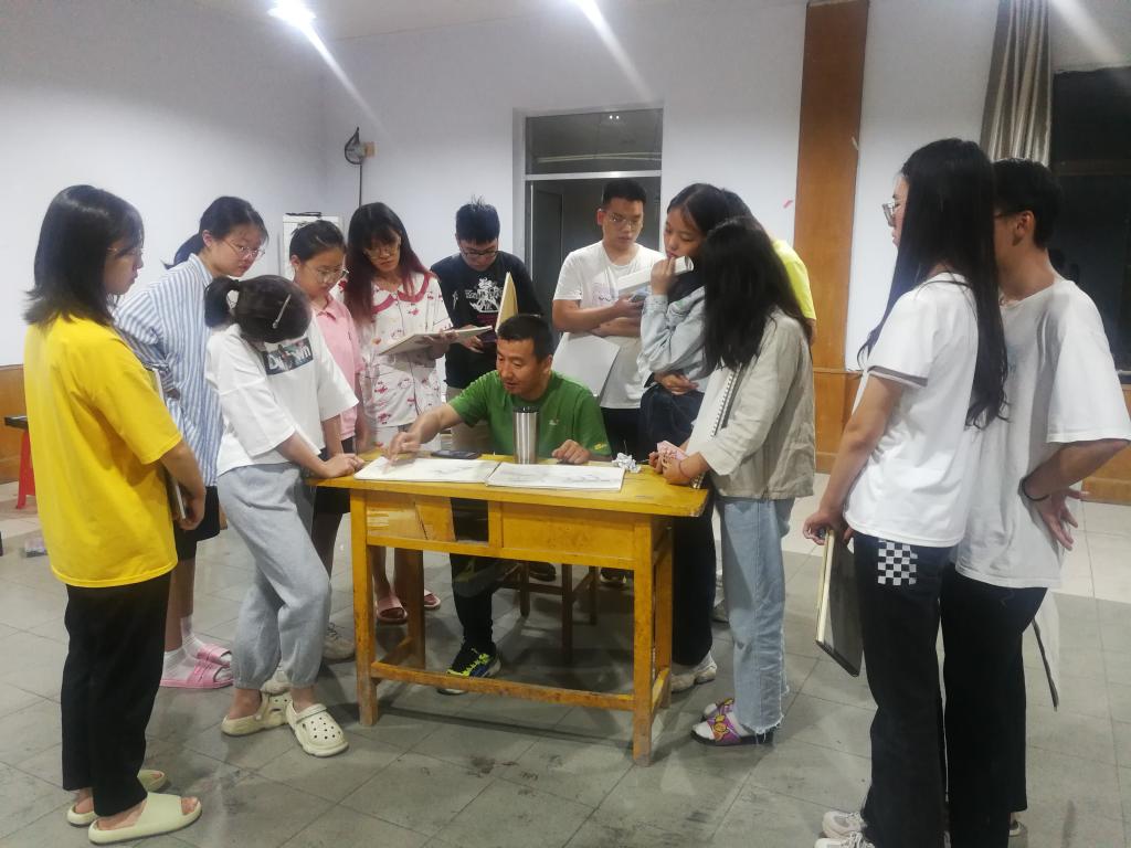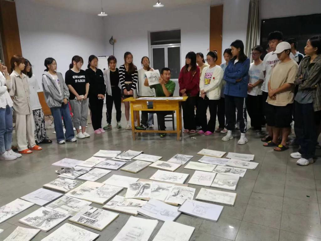 实习期间,在我院陈广凤老师和美术学院杨广宇老师的带领下,同学们进行实地考察。内容主要包括对鲁中山区古村落、民俗建筑及自然景观等进行采风写生,同时本次实习还对当地山区民宿进行了考察调研。全体同学学习热情高涨,每天在不同地点进行写生实习,并在返回实习基地后于基地画室由指导老师对作品进行细致的现场讲评和逐一指导,使学生了解素描速写构图技巧、光影关系和画面内容归纳整理方法等基础知识并对作品进行修改完善。