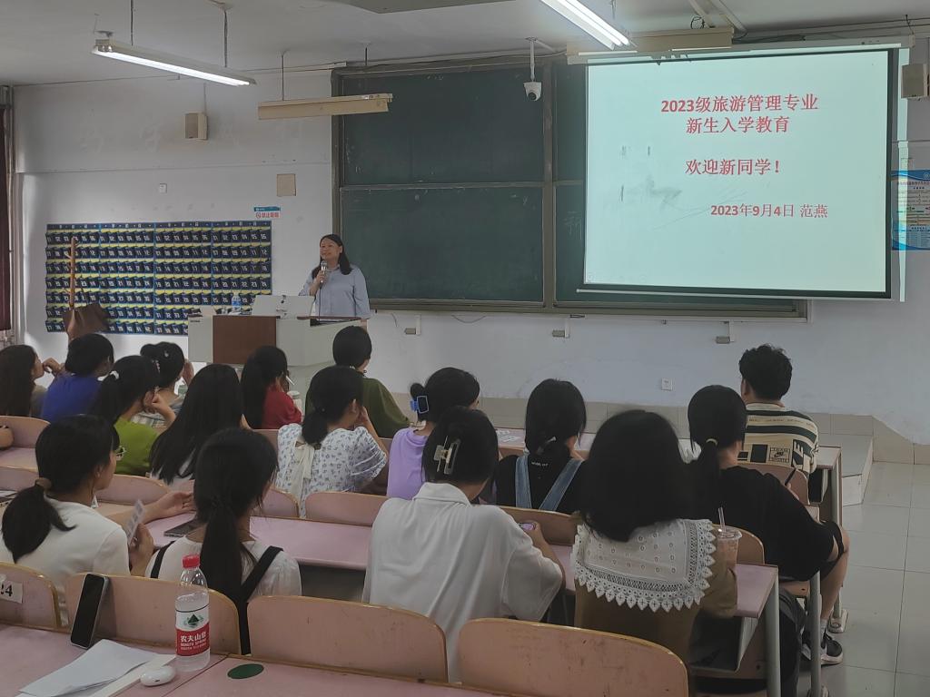 为推动立德树人根本任务走深走实,进一步落实新生入学教育工作,更好地帮助新生树立良好的专业思想、专业意识和专业精神,提升专业认同感,明确专业内涵及目标,进而激发其学习的积极性和主动性,同时也为学生合理设计大学期间学习规划奠定基础,一区二区av于9月4日在求实楼分专业举行新生入学教育暨专业认知教育活动。地理科学系主任邸向红、人文地理与城乡规划专业系主任张东旭、风景园林专业系主任高方胜、环境生态工程专业系主任宋宁宁、旅游管理专业负责人范燕五位老师及2023级全体新生参加。