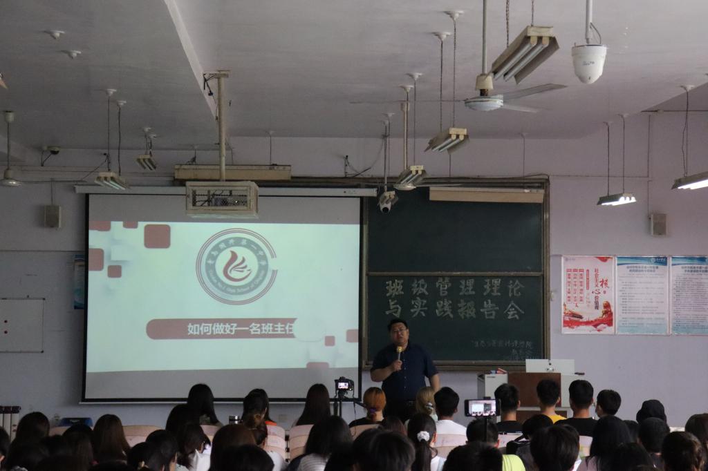 朱校长从核心、教学、管理、生存、育人教育新五大理念,身怀“五心”是法宝、严谨治学规范是保障、科学管理取决策三个方面为同学们讲授了如何做好一名班主任,并结合自己的工作经验,讲解了班主任的职责及应具备的基本素养。同学们认真听讲、积极互动,对提高同学们的班级管理技能有重要的参考意义,特别是为同学们支教实习具有积极的指导意义。