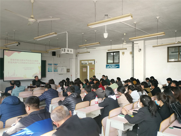 会议学习了车滨书记在全校全面从严治党工作会议上的讲话精神,观看了从严治党警示教育片,各党支部组织党员就做好本职工作,确保全面从严治党任务落到实处进行了讨论。大家一致表示,深入领会全面从严治党的重大意义,不忘初心,牢记使命,锐意进取,扎实工作,明确工作职责,强化担当精神,努力营造风清气正的良好政治生态和育人环境。