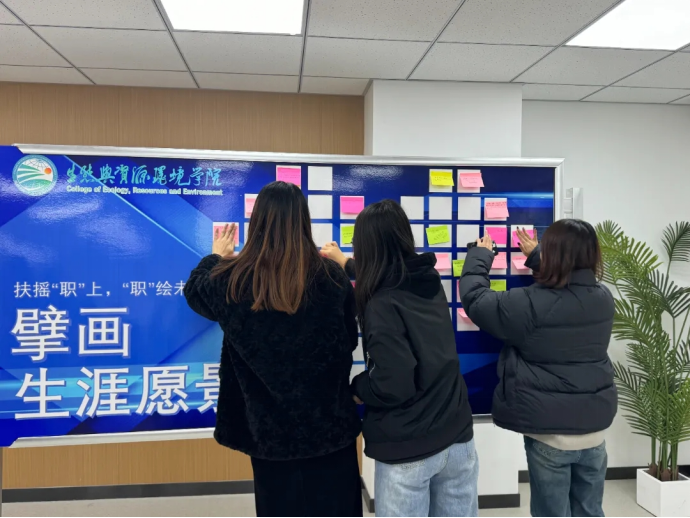 活动现场,根据十六型人格(MBTI)理论,就业指导教师带领同学们从兴趣、性格、技能和价值观四个方面,进行了自我认识的探索;随后,老师带领每一位同学按照觉知与承诺、自我探索、探索工作世界、决策、求职行动、再评估的系统职业生涯规划法,引导同学们为自己的未来职业生涯做了短期、中期、长期的规划,帮助同学们明确人生未来的奋斗目标,合理安排大学的学习生活,促进个性发展和综合素质提升;活动最后,在愿景墙上书写并张贴个人在未来职业生涯中达成的愿景,让同学们能够更清晰地认识到自己的职业目标。