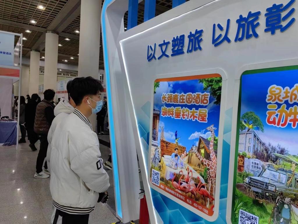 本次招聘会有包含山东文旅云智能科技有限公司、圣洋国际旅游有限公司等300多家企业参展,招聘对象为2023届及往届未就业高校毕业生、文旅行业从业人员及各类有意愿从事文旅行业的社会劳动者。各公司工作人员向在场同学就公司的一些规章制度、福利待遇、企业文化、现有产业结构、组织构架、人力资源政策等几个方面向同学们做了介绍,并现场解答同学们的疑问。