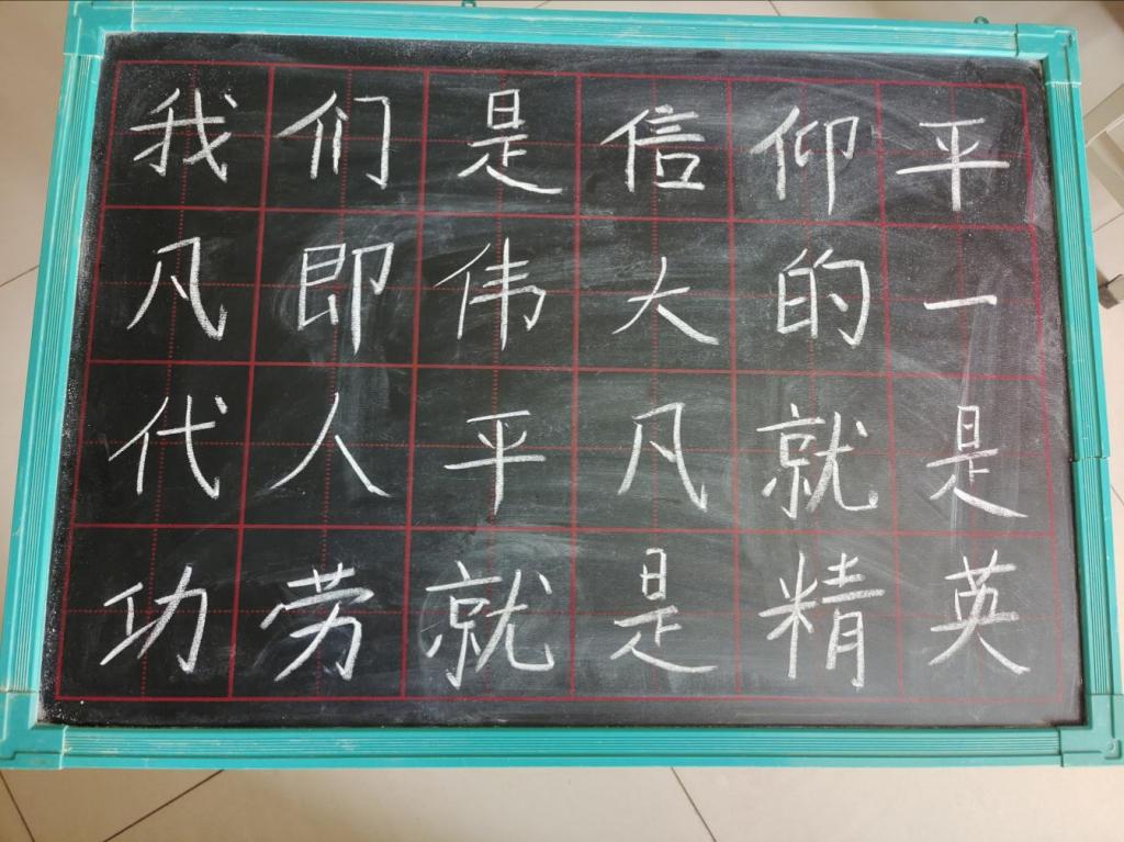 本次活动由我院学生会社团部主办,2020级地理科学类学生共同参与。活动以“笔绘才艺,粉笔生辉”为主题开展。为了练好粉笔字,同学们利用课余时间寻找空闲教室,自费购买小黑板进行练习,书写选定的古诗词、名人名言等,挥洒心中的豪情。