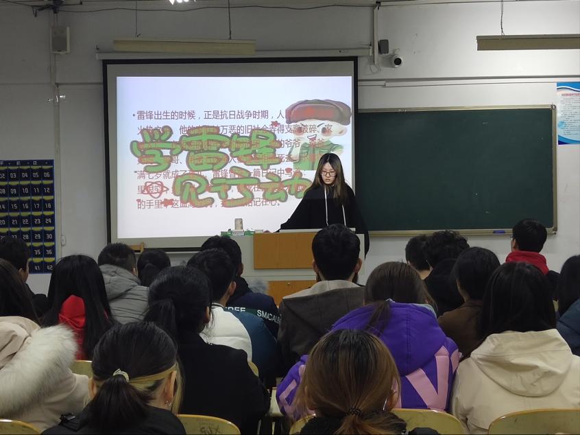 在活动过程中,同学们就学习践行雷锋精神的理念,纷纷上台发言,阐述自己对雷锋精神的认识,体现了自己独特的见解。团支书通过视频和PPT介绍了雷锋同志的生平和他在日常生活中的一些看似微不足道实际上却深入人心、感人至深的事情。同学们也纷纷表示他们将用自己的行动传承和弘扬雷锋精神,不负时代重托。