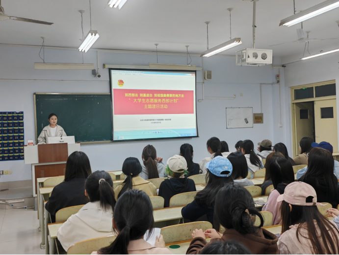 各团支部,向同学们详细介绍了国家西部计划的政策导向,以及西部地区对人才的需求和发展机遇。并对学生关注的西部计划参与方式、志愿者培训内容、志愿服务享有的待遇等问题,进行了一一解答,增进了学生对西部计划的了解,鼓励同学们积极响应国家号召,深入基层,奔赴西部。