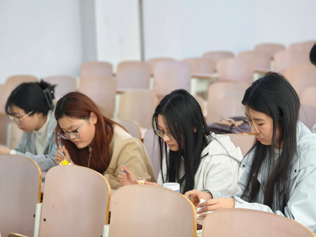 活动现场,同学们依序挑选出心属的石膏娃娃,开启这场色彩与心灵交互的独特体验。涂色过程中,同学们展现出不同的创作风格。有的同学精雕细琢,专注于每一处细节的涂色,力求精准呈现内心构想;有的同学则挥洒自如,大胆进行多元色彩的创意组合,以奔放笔触抒发内心情感。现场交流声此起彼伏,同学们彼此分享选色思路与内心感触,互动氛围融洽。