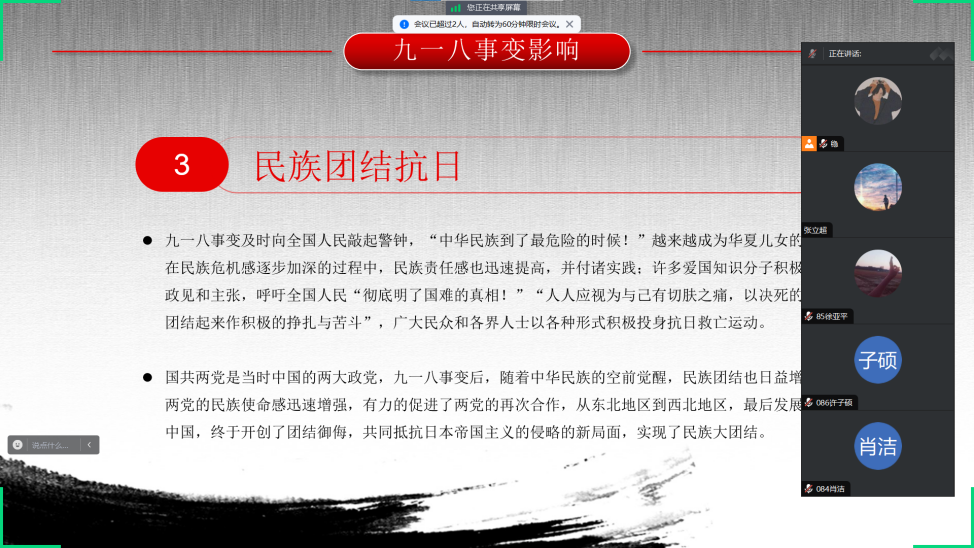 活动中,各团支部通过PPT、视频等资料重温了“九一八”事变的背景、经过和意义,以观看红色影片、分享红色故事等方式让同学们重温革命历史,缅怀革命先烈,坚定爱国情怀,汲取前行力量。通过学习,同学们看到了革命先烈们从苦难中汲取智慧,在耻辱中迸发力量。纷纷表示要将爱国热情转化为积极主动、自觉报效祖国的强大动力,牢记习近平总书记对青年的期许,不断坚定理想信念,努力锤炼本领,在全面建设社会主义现代化国家新征程中勇当开路先锋,争当事业闯将。