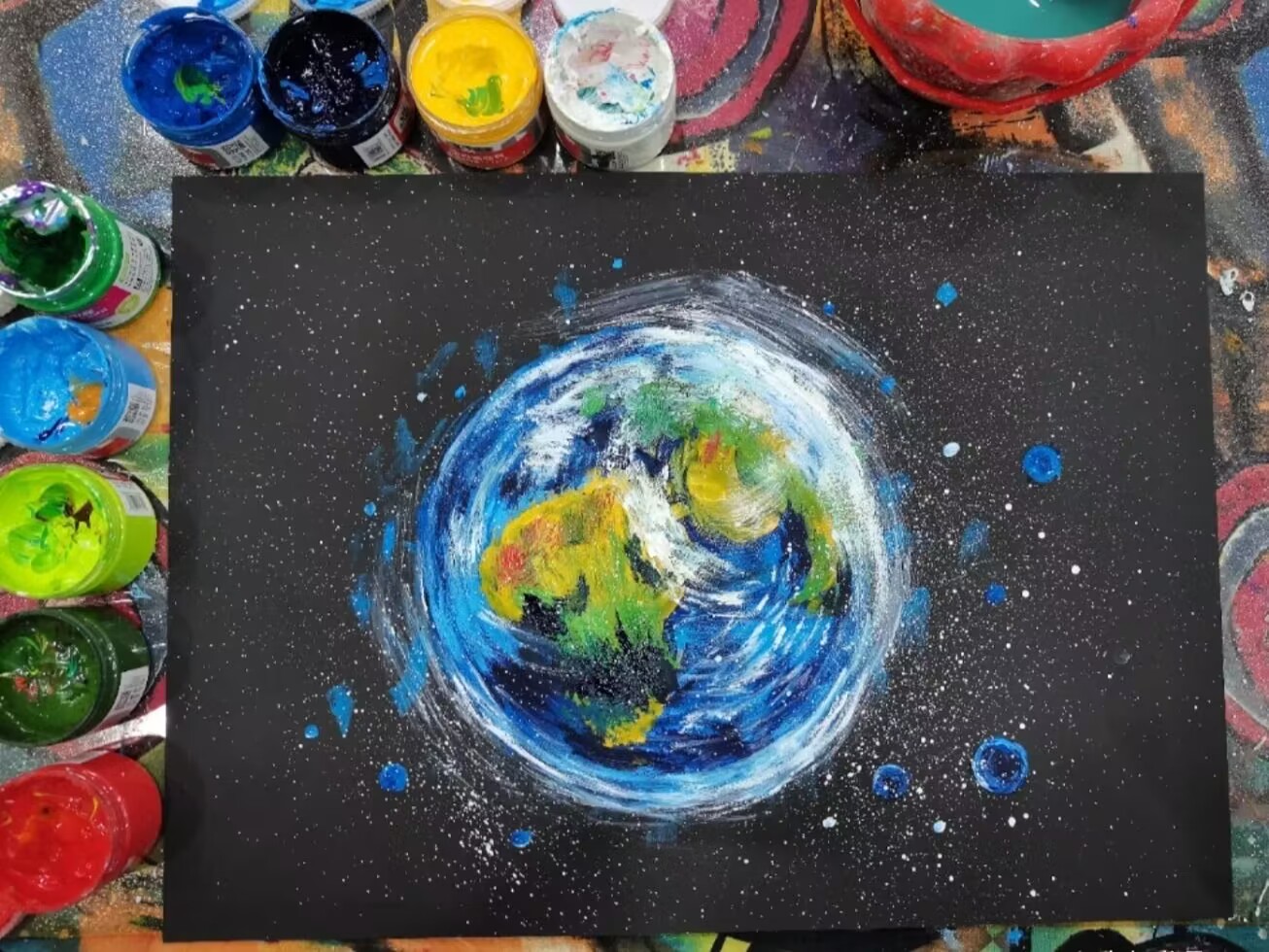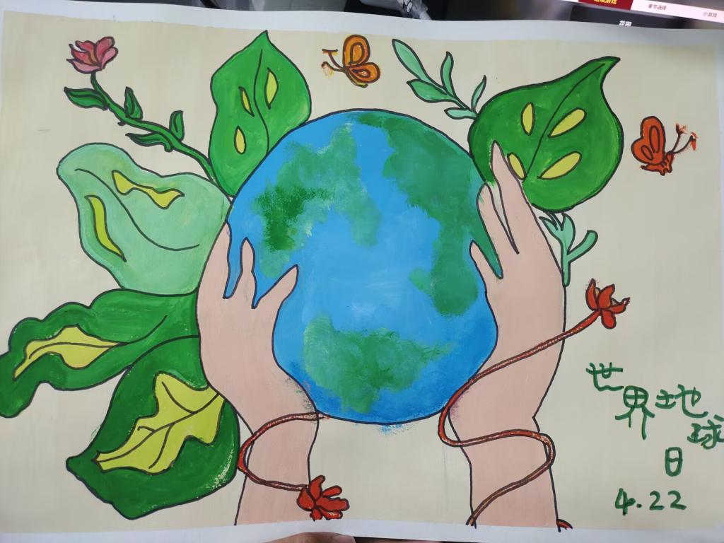 活动现场,由班干部向同学们介绍“世界地球日”的由来、发展及我们目前的生存环境,进一步提高大家对于现有环境问题的认识。随后,同学们发挥各自的奇思妙想,一笔一画描绘出属于自己心中的美丽家园,蓝色的海洋、绿色的树木、彩色的花朵......大家用丰富的色彩和独特的笔触传递了自己内心深处的情感和愿望,展现了自己心中的美好地球。经过一个小时的精心绘制,一幅幅绚丽多彩的图案出现在大家眼前,轻松有趣的方式让同学们对爱护地球、保护环境的意识更加深刻。