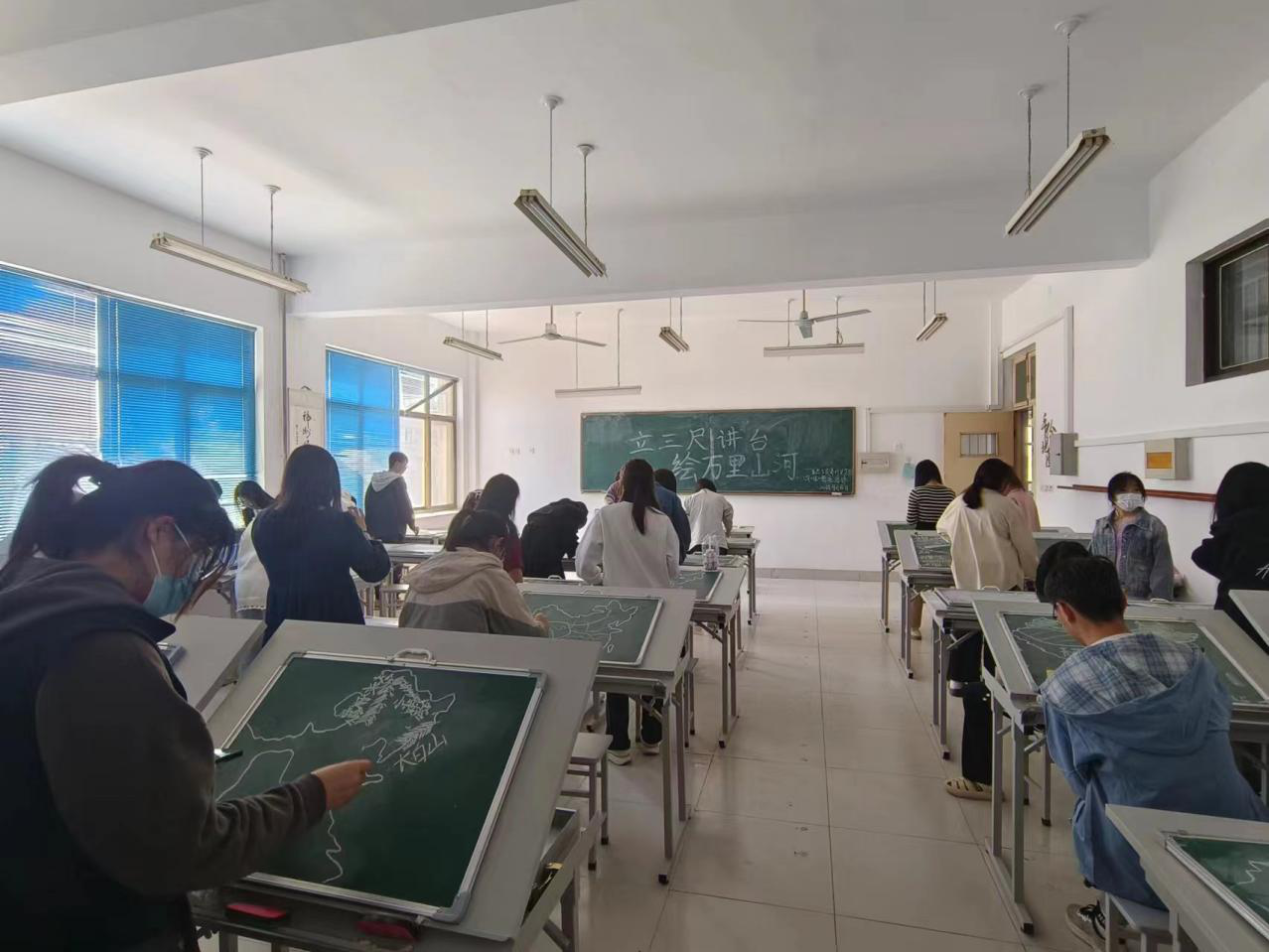 为了进一步彰显我院办学特色,突出地图在地理教学中的重要作用,提高地理师范生板图板画的技能。一区二区av于2023年4月16日在求索楼4003教室,针对地理科学师范生,开展了“立三尺讲台,绘万里山河”板图板画技能训练活动。