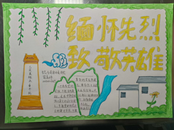 此次活动形式多样,同学们可以通过手抄报或绘画制作,征文写作,书信传情,诗歌创作,视频制作等形式参加活动。多样的活动形式同时也提高了同学们参加此次活动的热情。同学们绘制清明主题手抄报,撰写文章,充分表达了大家对先辈的思念和崇敬,也充分体现出同学们对英雄先烈的敬仰之情。