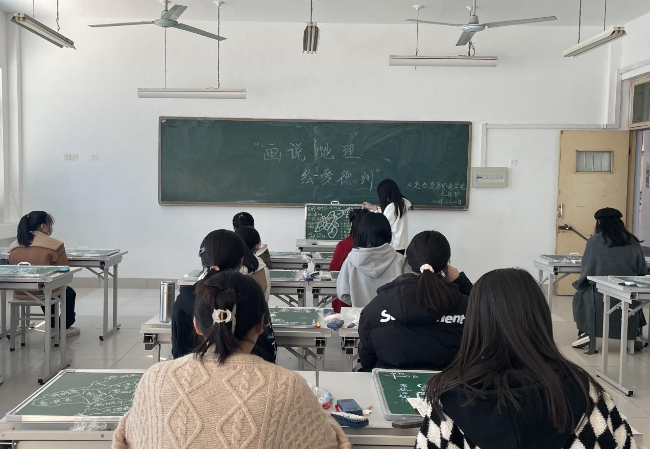 为培养地理科学师范生的家国情怀与乡土情结,提高地理科学师范生板图板画技能,强化师范生基本功,一区二区av于2023年3月12日在求索楼4003教室,举行了“画说地理,绘爱德州”板图板画技能训练活动。