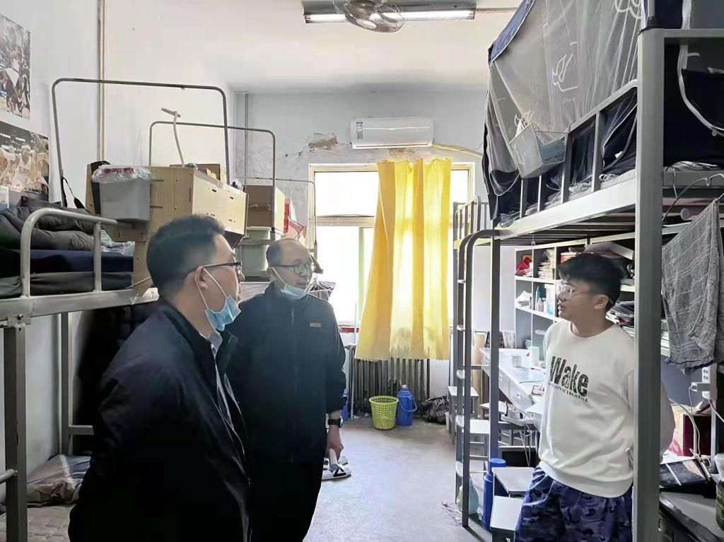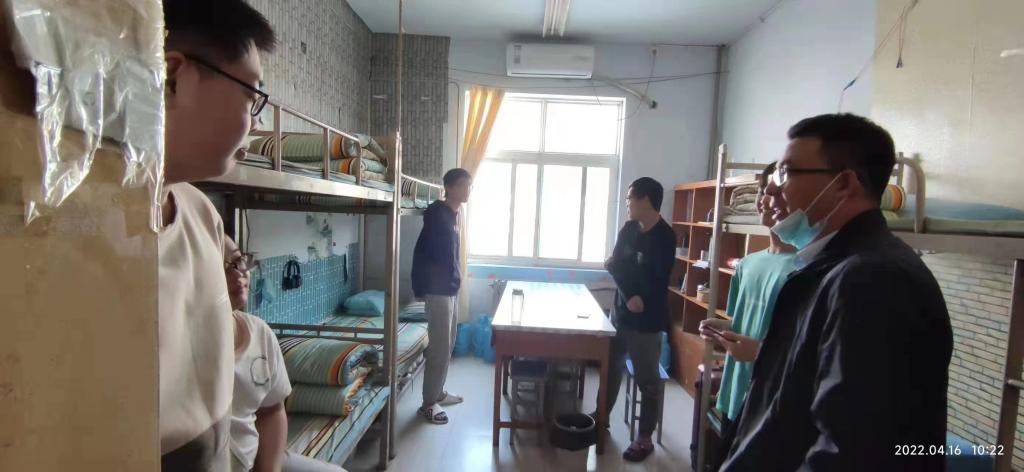 为进一步做细做实疫情防控工作,加强和了解学生宿舍的日常管理工作,2022年4月15日至17日,一区二区av领导班子分头带领全体班主任和辅导员深入学生宿舍走访,实地了解学生近段时间的学习、生活情况。