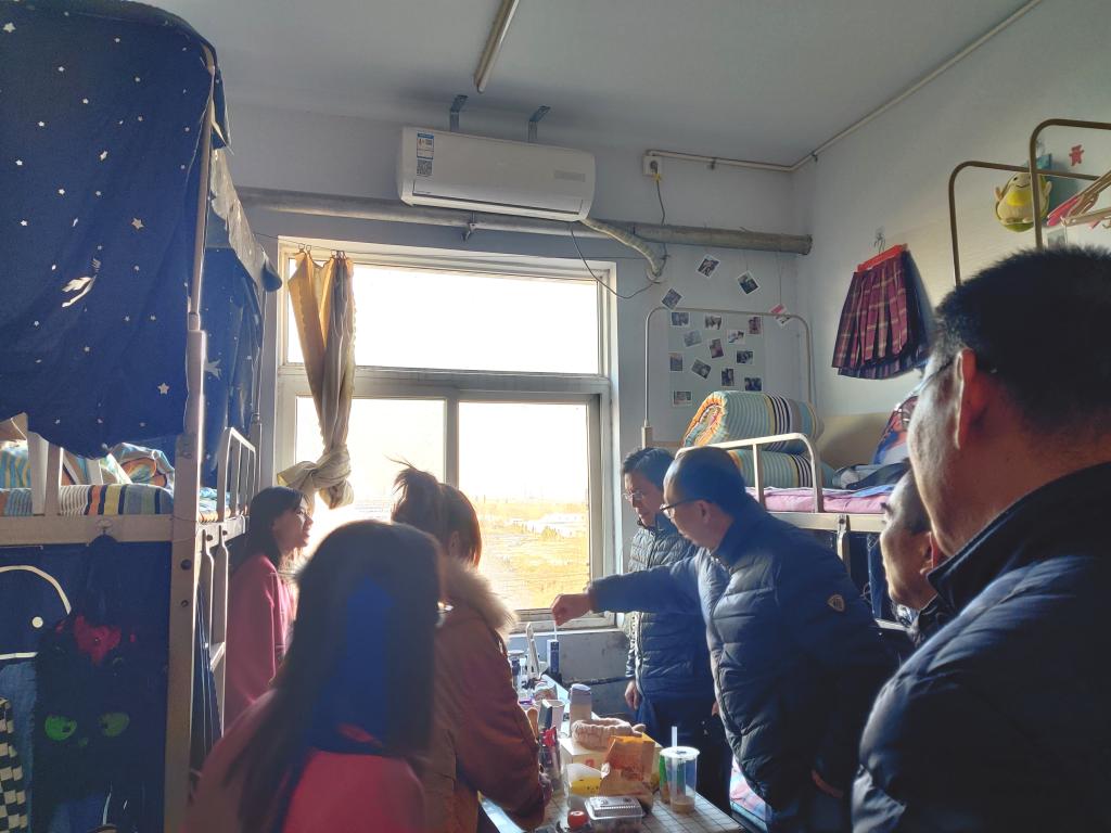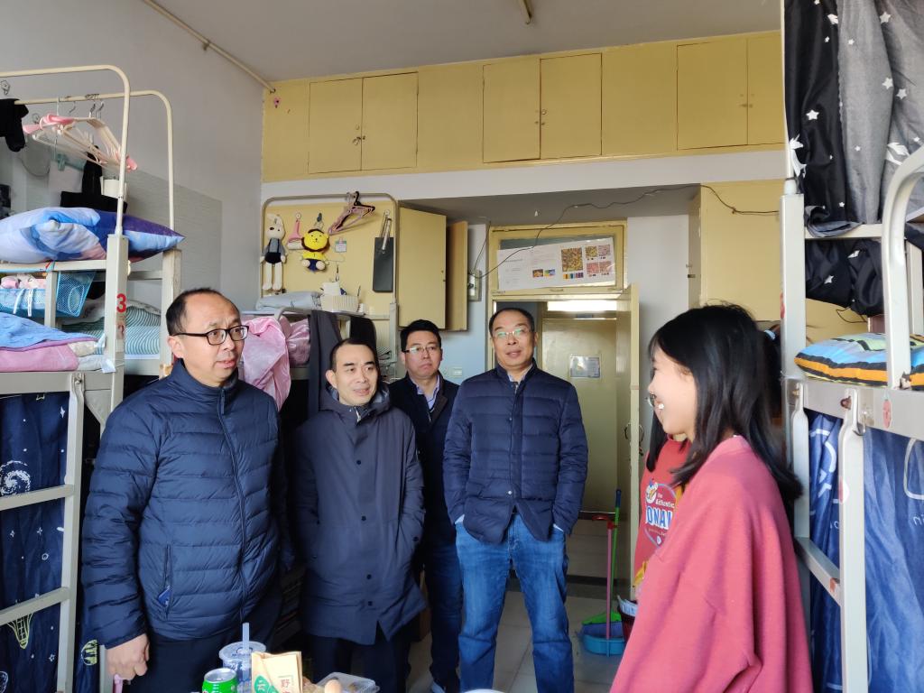2022年2月20日,为及时了解学生返校情况,准确掌握学生基本状况和思想动态,一区二区av赵华龙书记和吕志轩院长带领领导班子成员、辅导员和班主任前往学生宿舍走访。