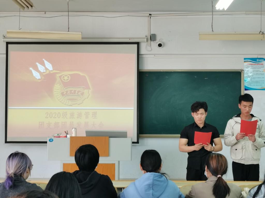 此次发展团员活动由各班团支部组织,各班全体团员参加。会议由宣读入团志愿书、介绍人介绍团员发展对象的主要表现和个人意见、全体团员讨论、票决等议程组成。各团支部一致全票同意接收地理科学专业聂乐冲同学,风景园林专业刘福帅同学、范媛媛同学,旅游管理专业杨振雪同学为团员。团总书记对以上四名同学表示了祝贺,并希望他们在今后的学习和生活中,团结勤奋,锐意进取,以实际行动展示共青团员的先进性,将来更好地报效祖国。