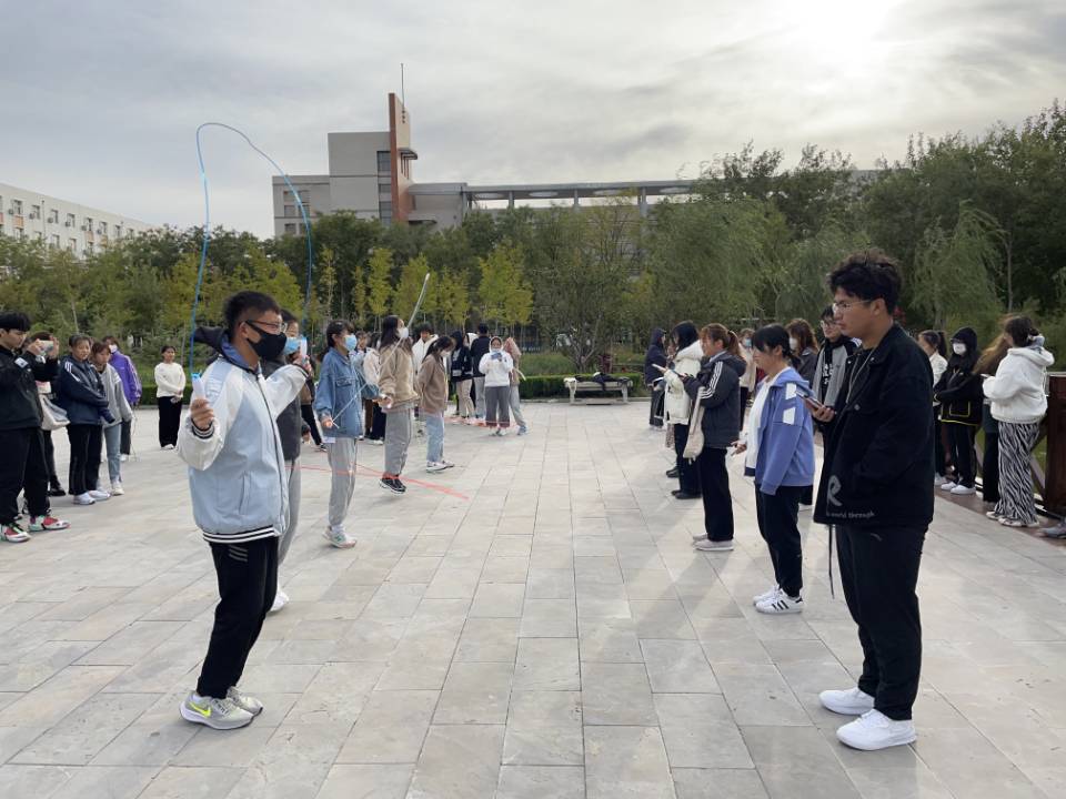 我院社团部设计了班级跳绳对抗赛、1分钟跳绳计时赛,同学们活动热情高涨,积极参与,充分展示出了青年人的活力与风采,同时表现出了团结一致,积极向上的良好精神风貌,现场气氛十分活跃。