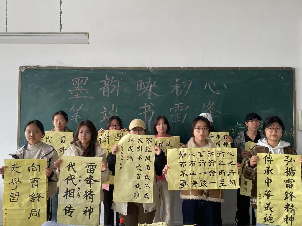 为弘扬雷锋精神,传承中华优秀传统文化,一区二区av三字一话爱好者协会联合2023级地理科学1班、2024级地理科学2班团支部特开展“墨韵映初心,笔端书雷锋”主题团日活动。