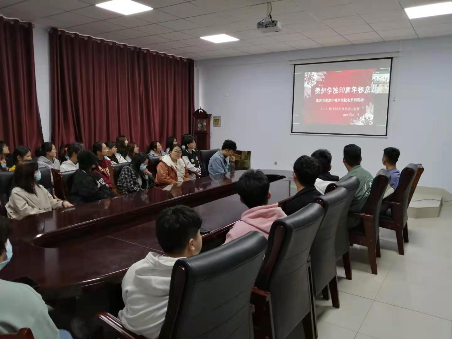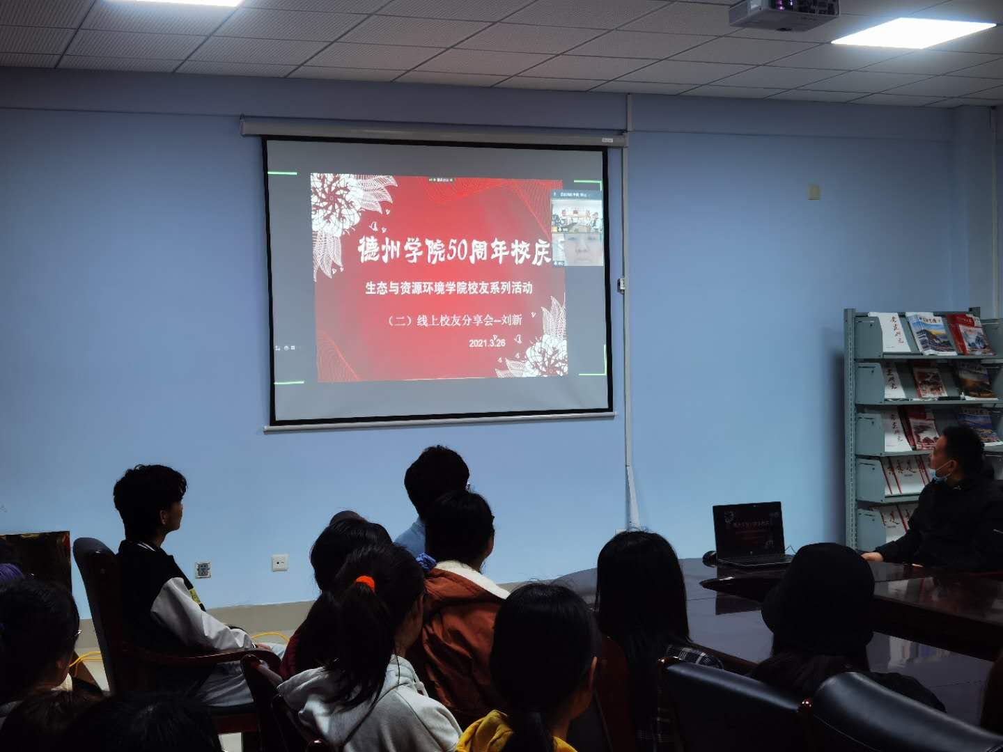 2021年3月26日下午,我院举办庆祝德州学院建校50周年,一区二区av校友交流会。邀请到2015级校友自然地理与资源环境专业毕业生刘新。