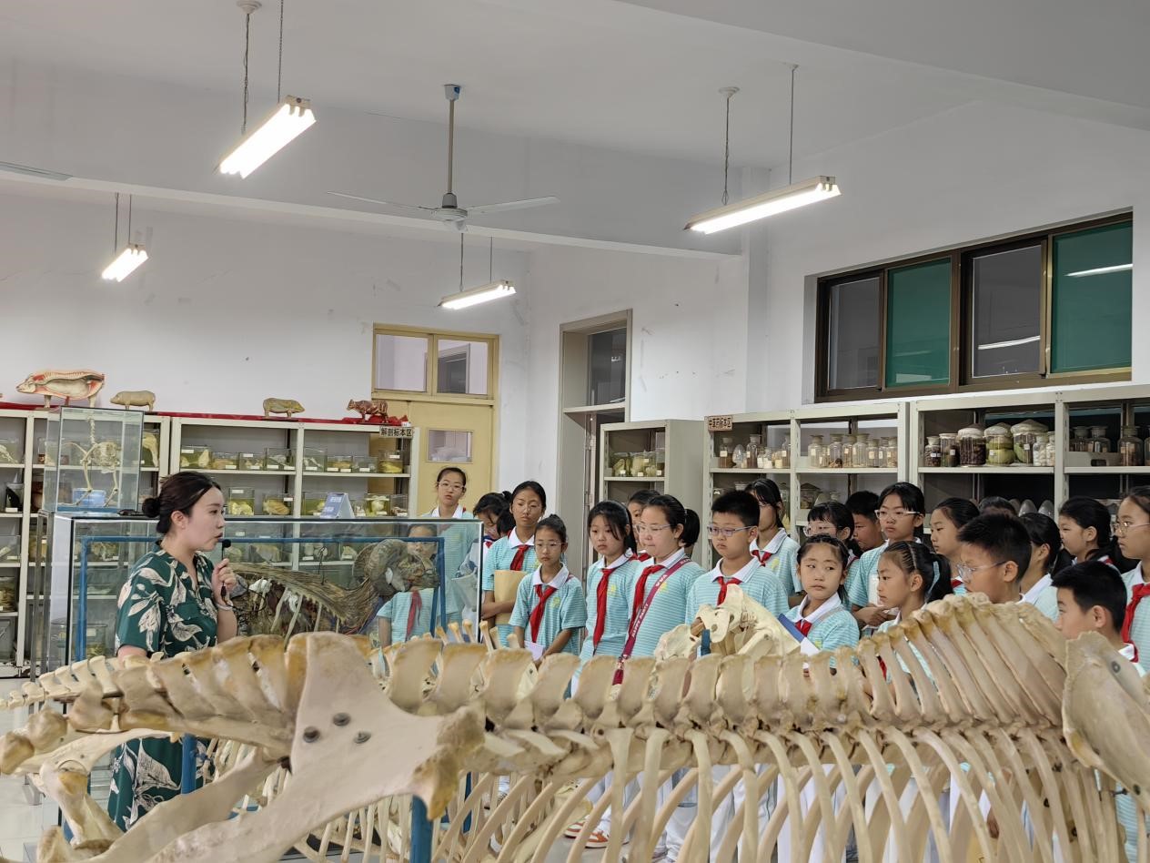 踏入科普基地,孩子们首先被动物标本室深深吸引。形态各异的动物标本整齐陈列,仿佛将广袤自然浓缩于此。讲解员老师生动讲述着有关标本的小故事,孩子们睁大好奇的双眼,惊叹于生物多样性的魅力,深刻感受到每个生命都是生态系统不可或缺的一环,保护动物的理念也在交流互动中悄然扎根;移步地质标本室,犹如打开了一部地球演化的厚重史书。从远古时期的沉积岩到火山喷发形成的玄武岩,从晶莹剔透的矿物晶体到记录地质变迁的化石,讲解员以通俗有趣的语言,带领孩子们穿越时空,解读岩石中蕴藏的地球密码。触摸着承载岁月痕迹的矿石,孩子们领悟到自然资源的珍贵与不可再生,珍惜地球资源的责任感油然而生;昆虫标本室则将孩子们带入微观奇妙世界。五彩斑斓的蝴蝶标本翩翩起舞,身披铠甲的甲虫标本威风凛凛,精巧的昆虫生态场景复原,让孩子们直观领略昆虫的独特生存智慧。在探索昆虫奥秘的过程中,孩子们了解到这些微小生物在生态系统中扮演的重要角色,体会到自然界万物相互依存的奇妙关系,对自然生态的敬畏之心愈发强烈。现场气氛热烈,求知的渴望与探索的热情交织碰撞,激发着无限创意与想象。